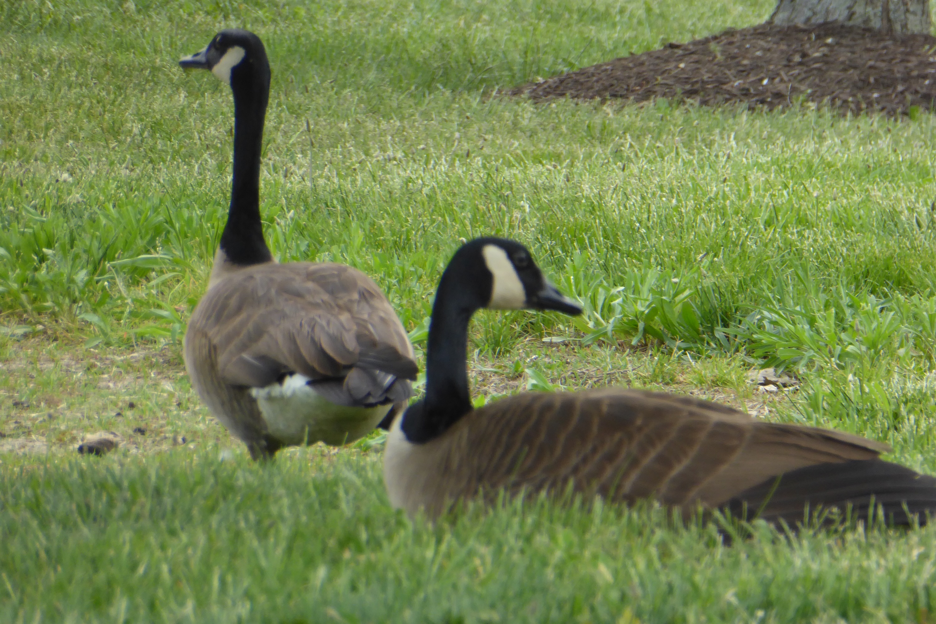 The geese are lounging it’s a hot spring…the parents are relaxing. The goslings are on the march.