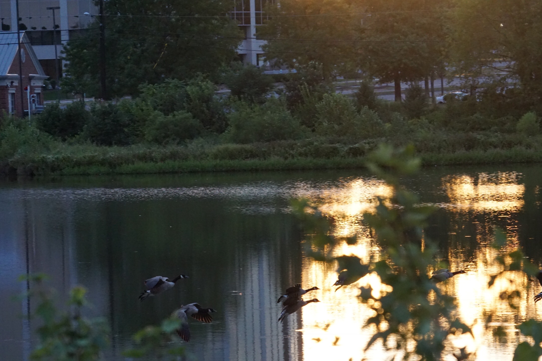 This is the hour when the geese come in … Many flocks start landing. And they start separating to their respective places.