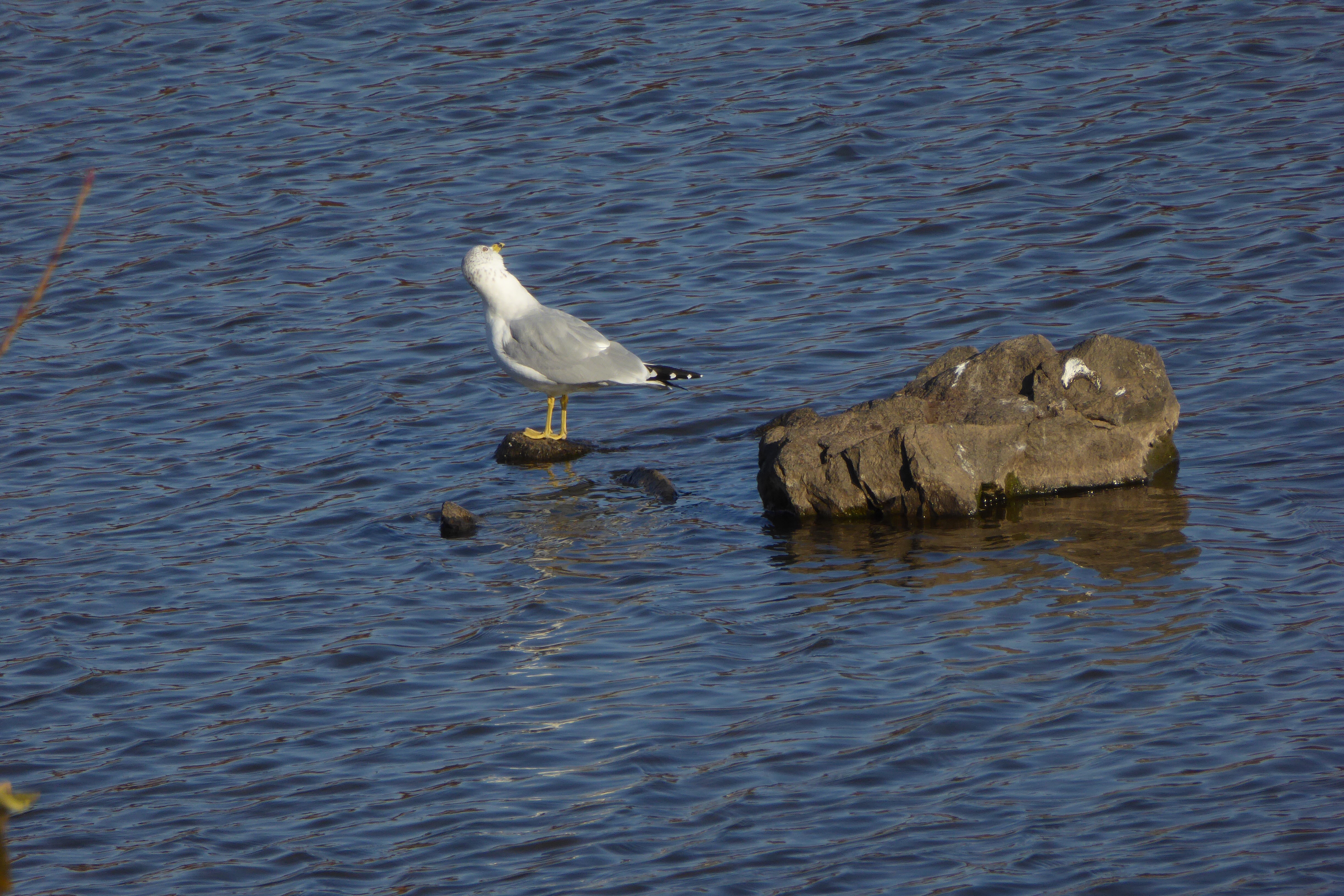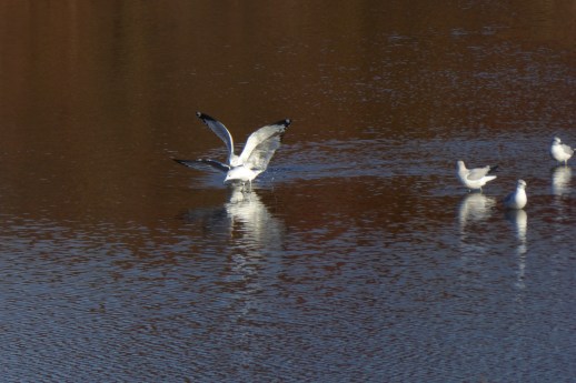 The gulls are back … and some are fooling around. And one is looking about.