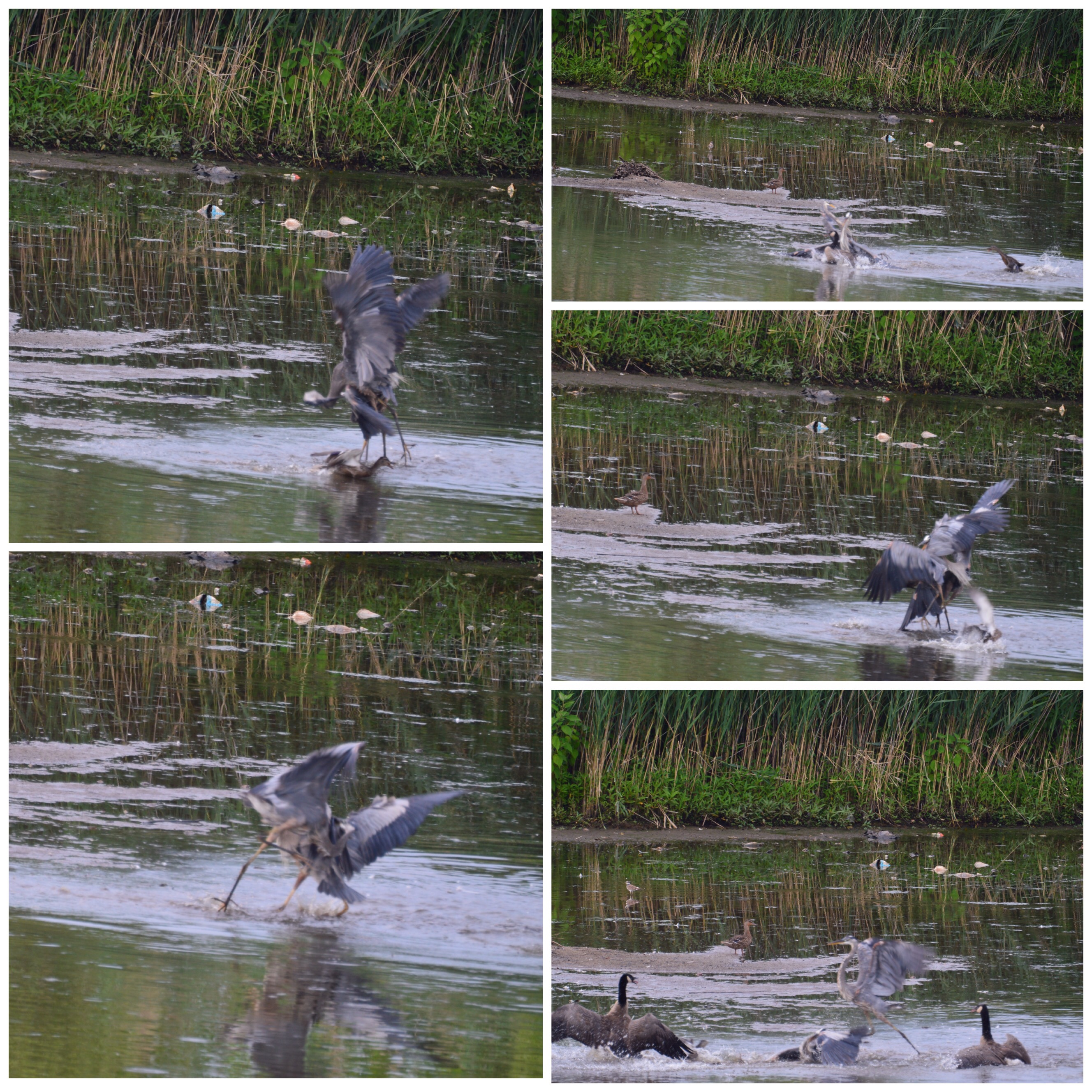 We had a rumble in the pond … one more there was one Heron and then suddenly another one showed up. Herons are territorial and they began to fight. They trapped a duck and then the duck got feisty. Finally they rolled over a pair of geese and the geese were not have any of and swung around and they went into fight mode. It times like these when I wished I had better gear. But wow! It lasted for five minutes. No geese or duck harmed that I can tell. And only one heron left in the pond. The other flew away.
